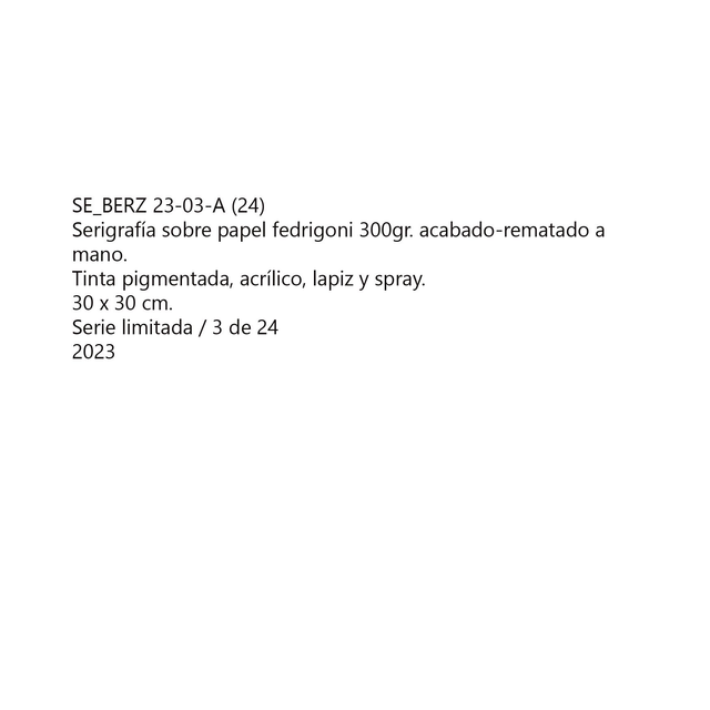 Serigrafía terminada-rematada a mano sobre papel Ferdigoni 300gr.